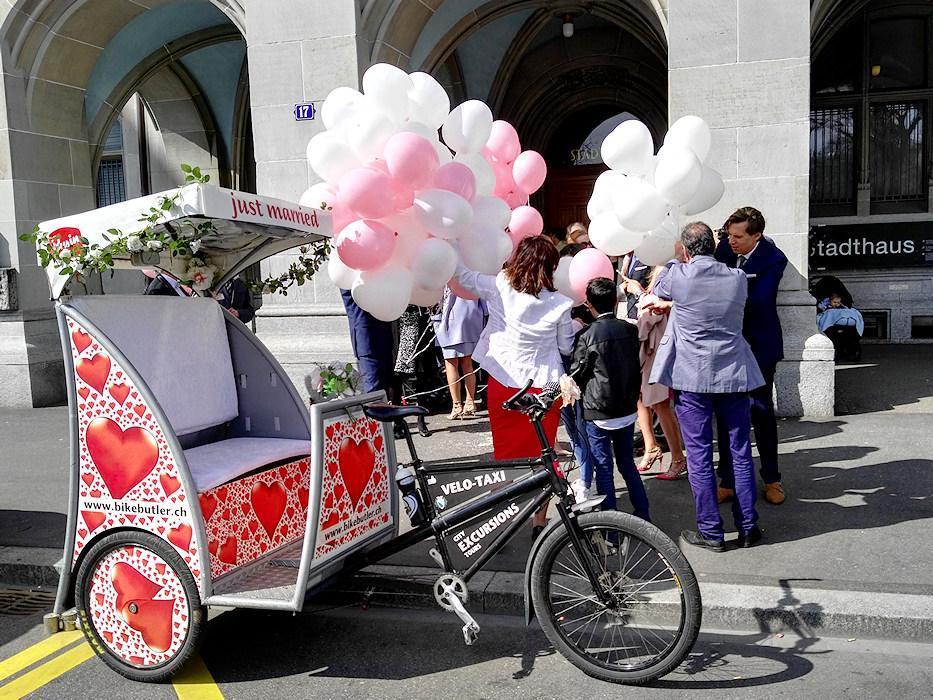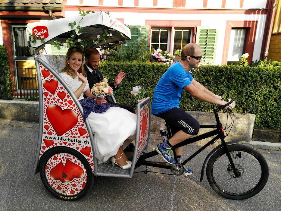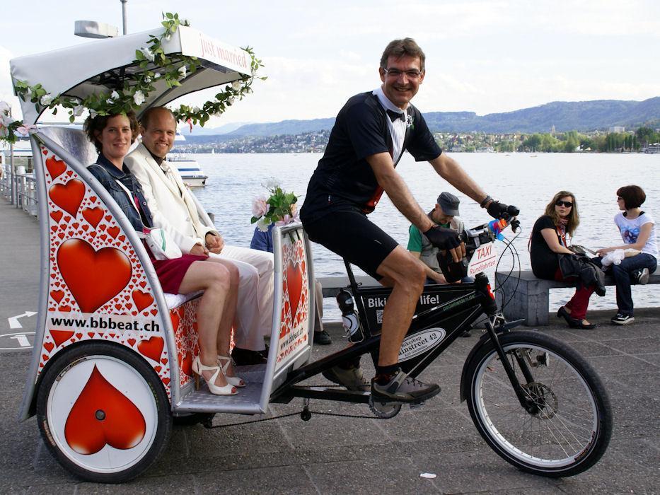 Eine wunderschöne Überraschung und ein unvergessliches Erlebnis für das Brautpaar. In der festlich geschmückten Hochzeits-Rikscha eine kleine Rundfahrt geniessen oder auch einfach nur ein paar tolle Fotos schiessen für den Weg in eine gemeinsame, glückliche Zukunft.